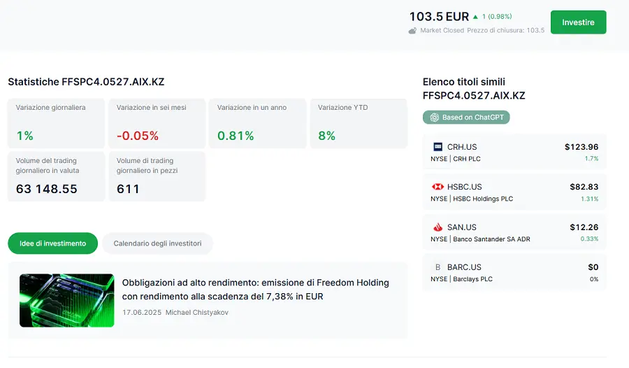 Freedom Holding Corp è una banca internazionale in forte crescita e questo bond è molto diverso dai BTP o da altre obbligazioni societarie.