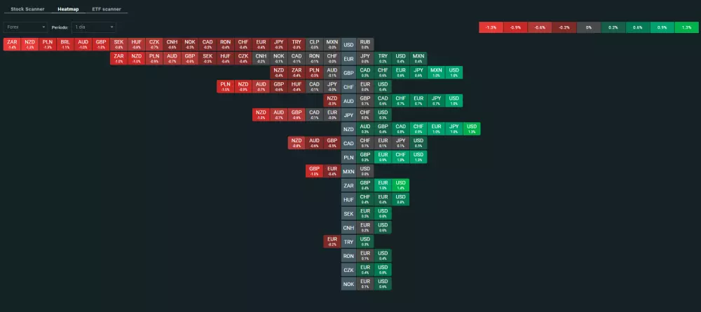 - Los análisis de mercado: incluyendo el escáner de valores, el sentimiento del mercado, los impulsores del mercado y el mapa de calor (EQ).