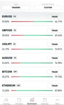 De hecho, existen los mismos gráficos push con indicadores de análisis técnico (aunque técnicamente analizar un gráfico desde un smartphone es bastante incómodo), órdenes condicionales, calendario económico, sentimiento del mercado, etc.
