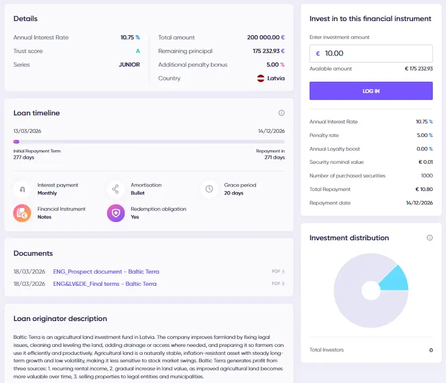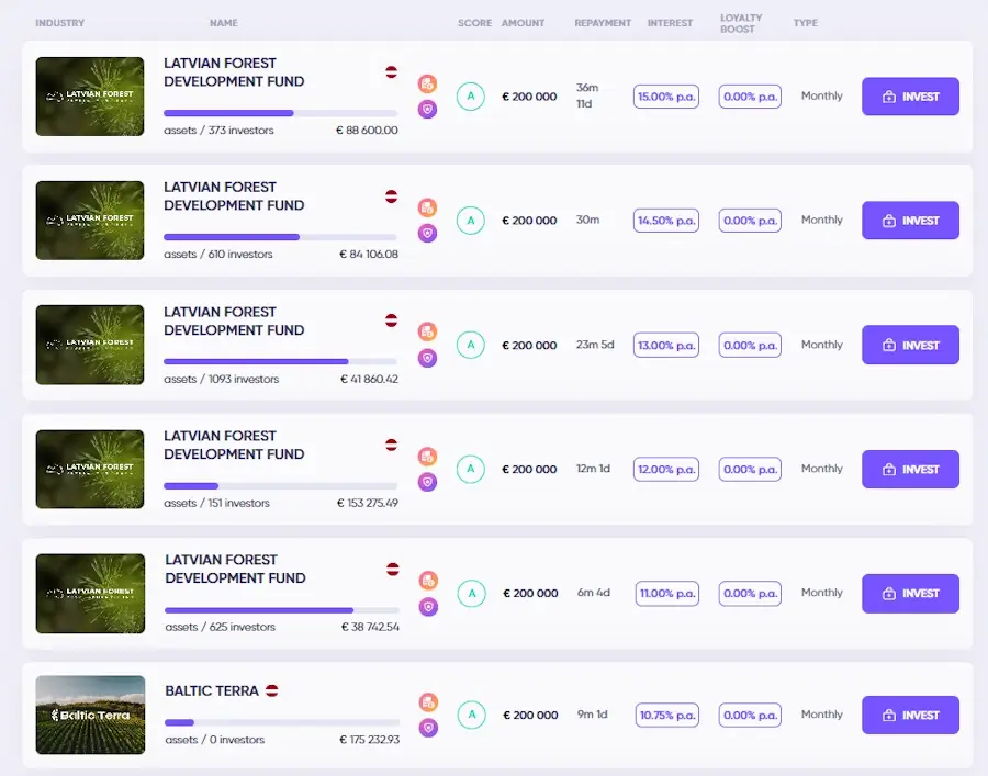Una delle piattaforme che rende possibile ciò è Debitum Investments, marketplace di P2B (peer-to-business) lending nato in Lettonia nel 2019 e regolamentato nell’Unione Europea, che consente di investire in asset reali, tra cui terreni agricoli e foreste in Lettonia, con rendimenti target fino al 15% annuo.