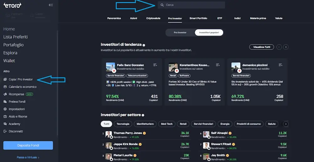 - Vai alla sezione dedicata ai Popular Investor: