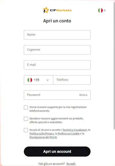 Come aprire un conto di trading con CIFMARKETS?