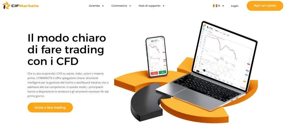 In questa recensione troverai un'analisi dettagliata di CIFMARKETS. Inizieremo dagli aspetti legati alla sicurezza e all'affidabilità del broker, per poi approfondire i servizi offerti, le condizioni di trading e le principali caratteristiche operative.