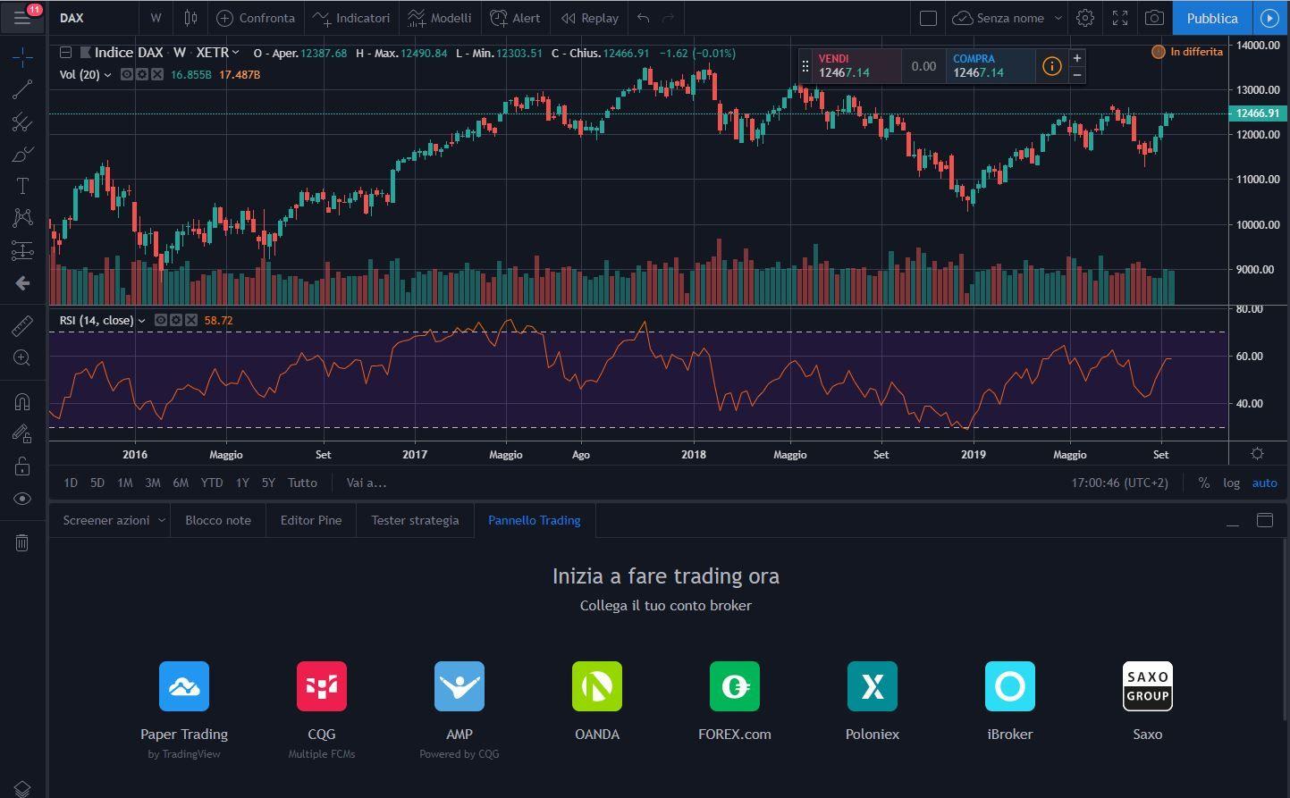TradingView è un software di analisi grafica a supporto del trading. Chiunque sia in possesso di un conto iBroker avrà la possibilità di allacciarlo a TradingView, in modo da usare quest’ultimo come una vera e propria piattaforma di trading alternativa.
