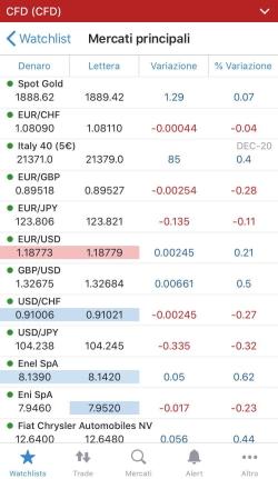 In pochi clic è possibile immettere ordini, impostare alert, consultare i grafici (anche se da smartphone diventa meno pratico applicare indicatori e strumenti geometrici).