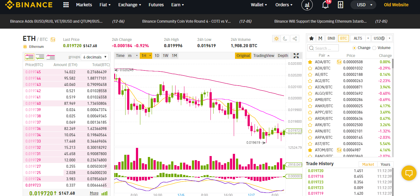 The main platform, BINANCE.COM, as mentioned above, allows you to trade cryptocurrencies.
